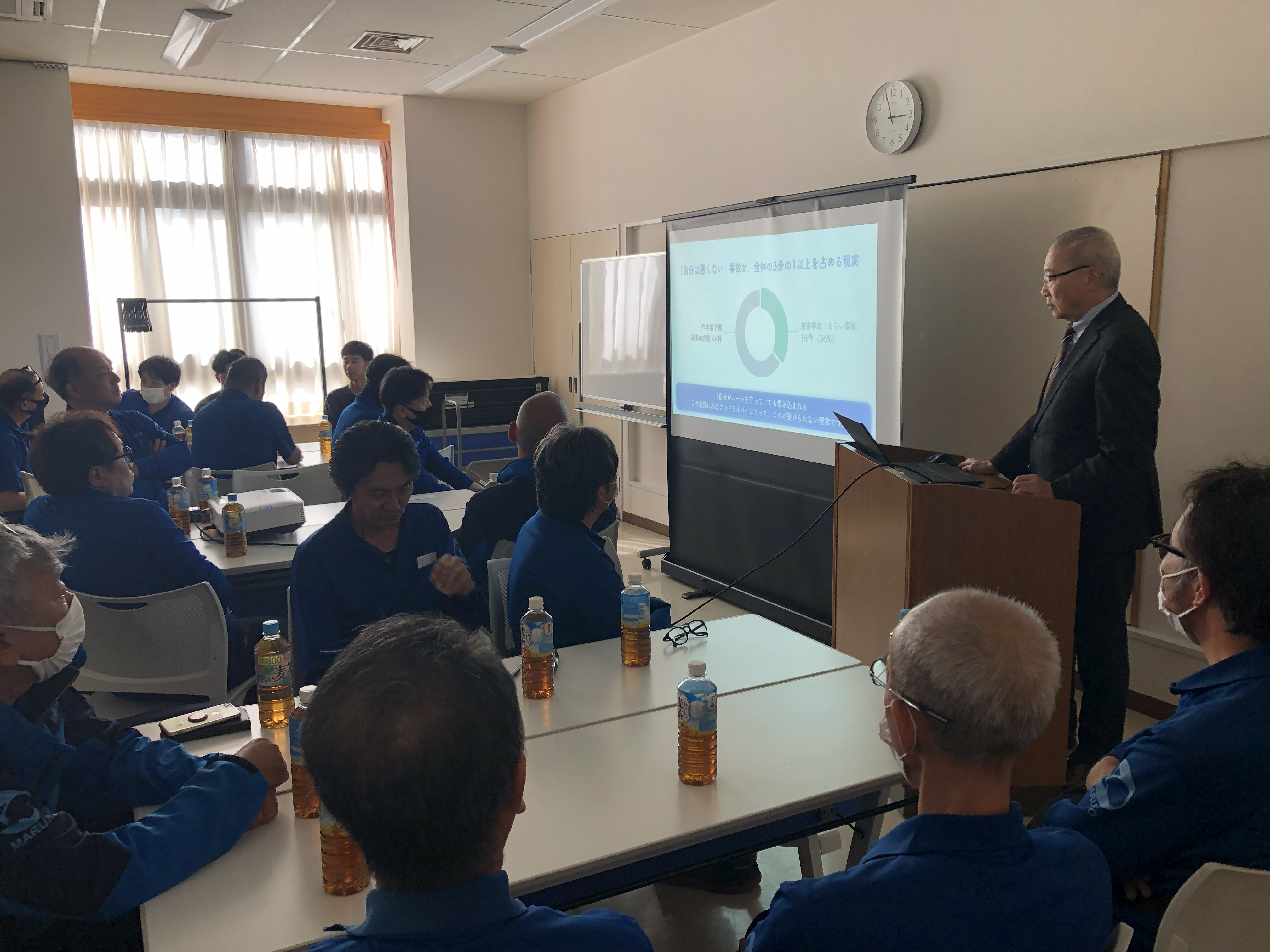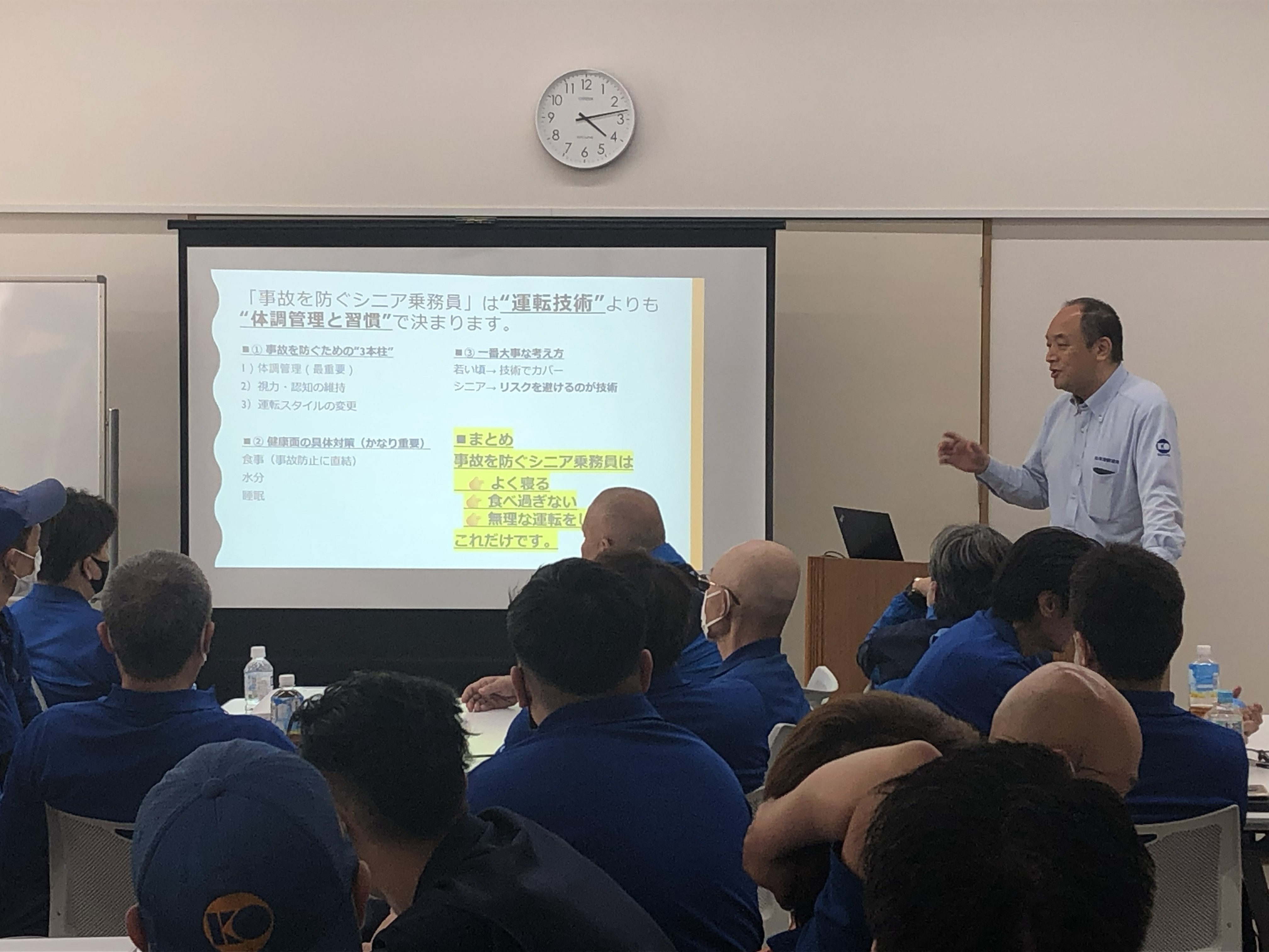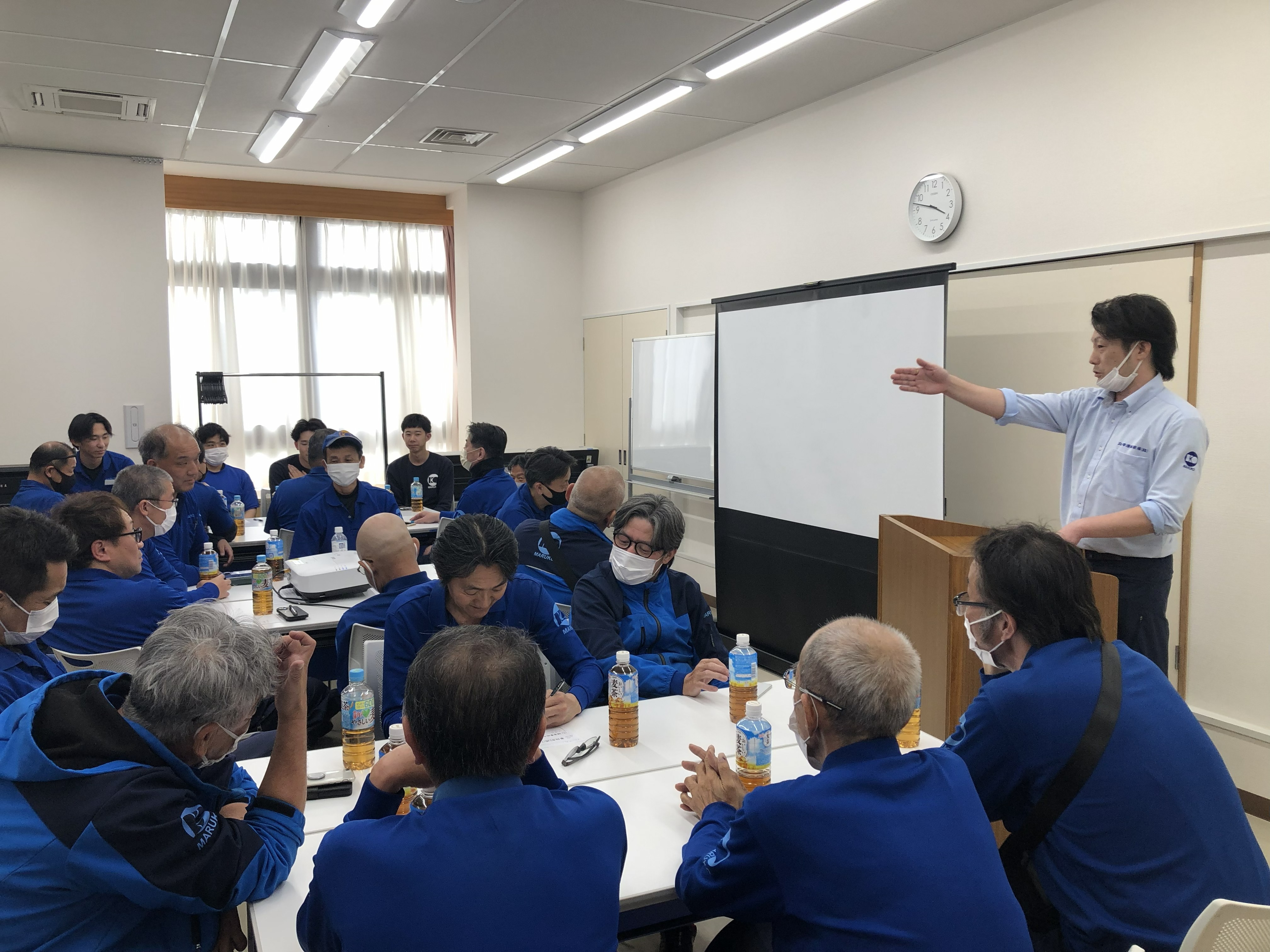 4月18日に健康診断と乗務員研修を行いました。 2026.04.28 今回のテーマは「法規改正に伴う事故防止」と「これからの季節に向けた熱中症対策・食事について」です。これから暑くなる時期に向けて、体調管理も重要な業務のひとつです。全員で安全運転を心がけ、長く元気に乗務できるよう取り組んでいきましょう。また乗務員研修は、若手を中心にすすめて参ります。将来への勉強ですね。ご安全に! マルコーグループ新着情報一覧はこちら 丸孝運輸倉庫株式会社新着情報一覧はこちら マルコーパッケージ株式会社新着情報一覧はこちら